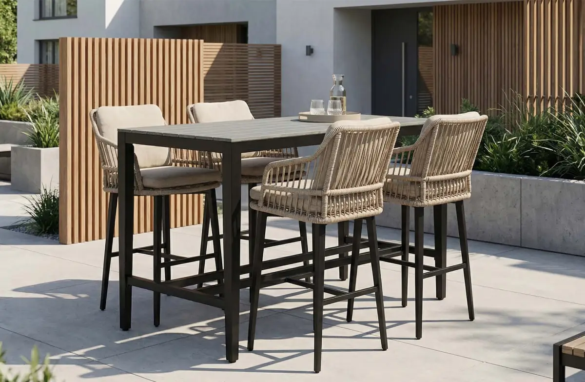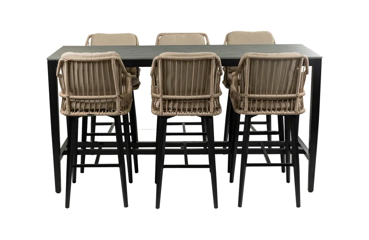 5-delige barset | 4 Isabel barstoelen Sand | Cyprus bartafel 150x75cm Grey