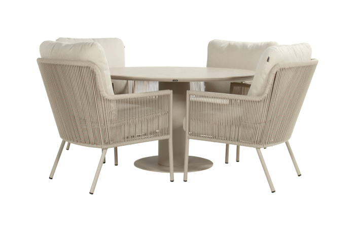 5-delige ronde lounge dining set | 4 Zaragoza tuinstoelen (Sand) | Tuintafel Zaragoza ø120cm (Sand)