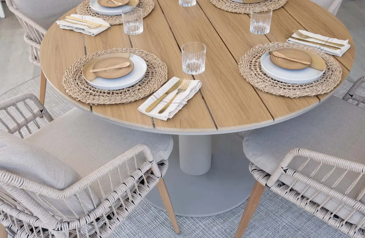 5-delige ronde tuinset | 4 Isabel tuinstoelen (Sand) | ø120cm Tower tuintafel (Black)