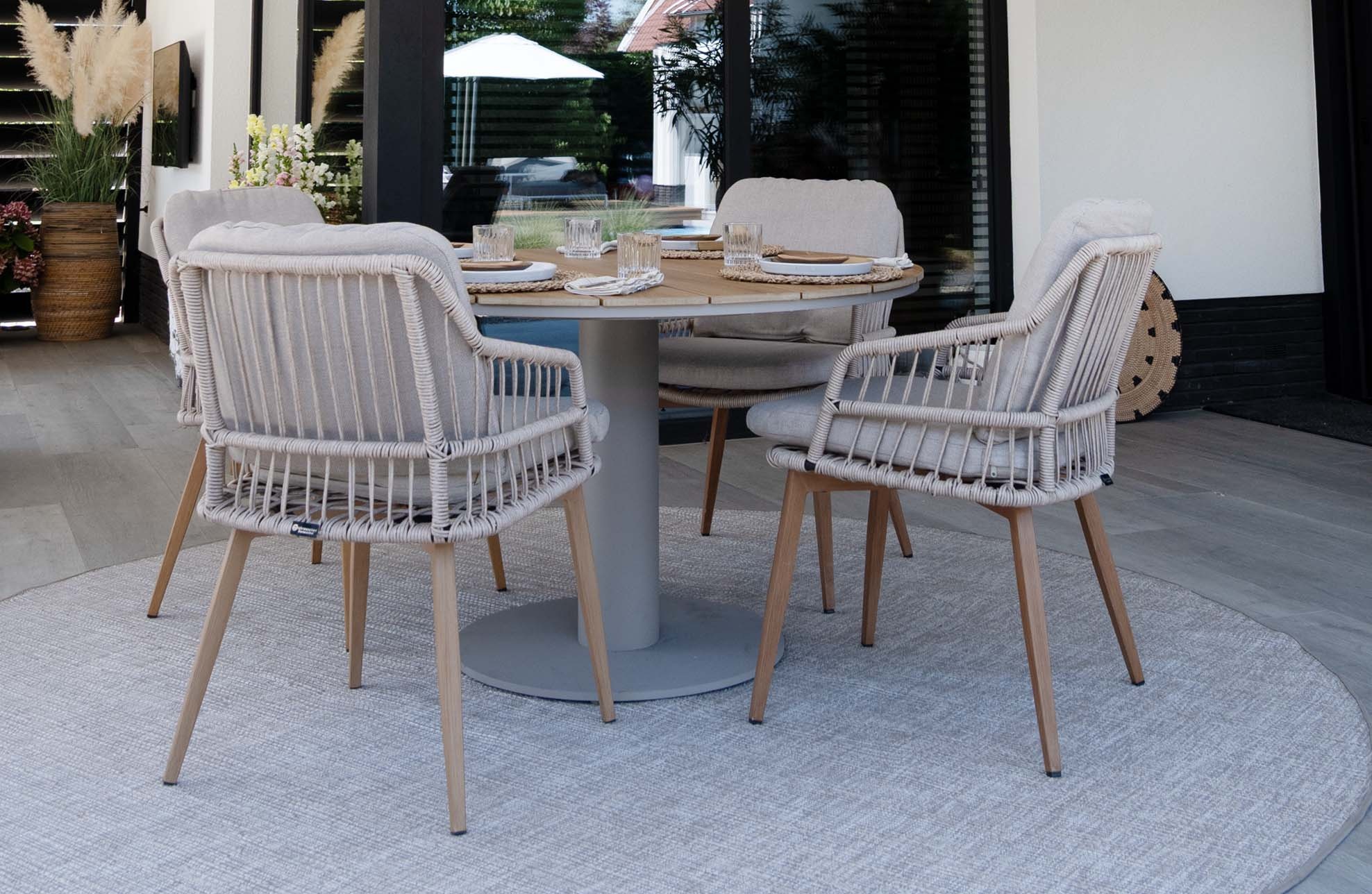 5-delige ronde tuinset | 4 Isabel tuinstoelen (Sand/Wood) | Tuintafel Tower ø120cm (Camel)