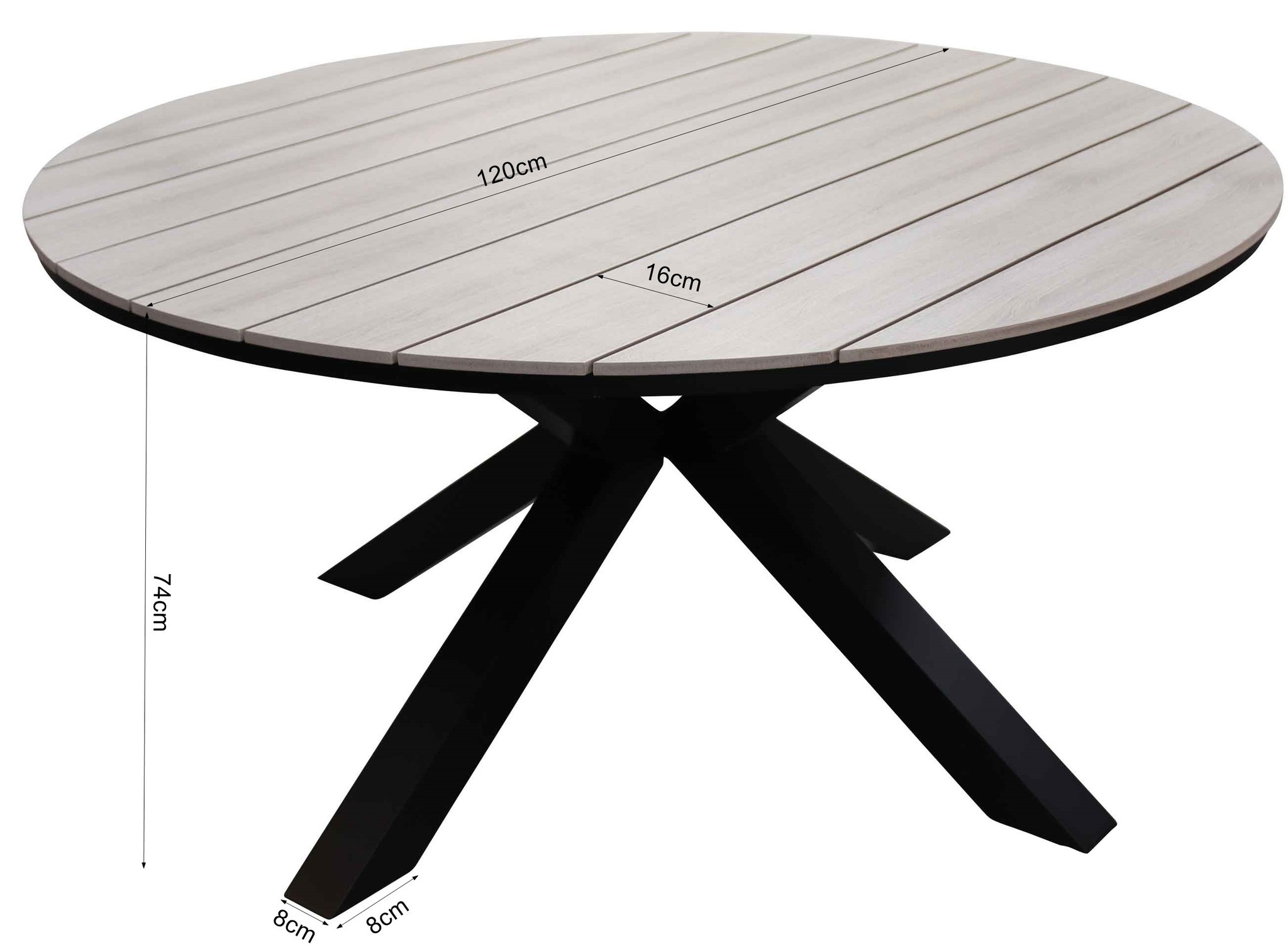 5-delige ronde tuinset | 4 Mona tuinstoelen (Black) | ⌀120cm Cyprus tuintafel (Wood)