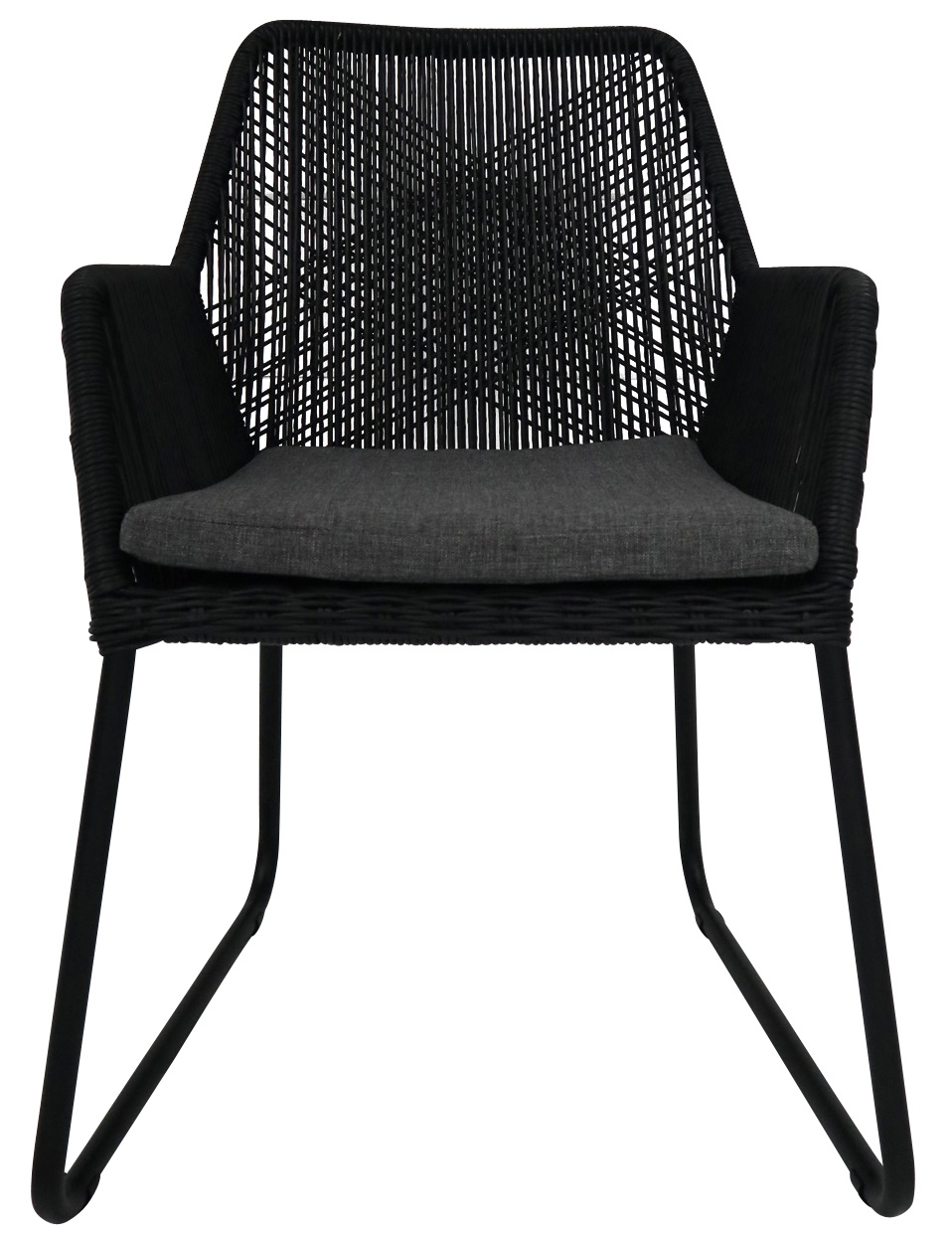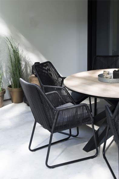 Ben je opzoek naar een stijlvolle tuinstoel met een scandinavische touch? Dan is de dining tuinstoel Mona echt iets voor jou. Het is een echte eyecatcher voor in je tuin. De tuinstoel is bespannen met kunststof rope wat zeer flexibel, sterk en weerbestendig is. Door de flexibiliteit van het rope zal het de rug goed ondersteunen en neemt het de natuurlijke vorm van de rug aan. Het frame bestaat uit gepoedercoated aluminium in de kleur zwart.
