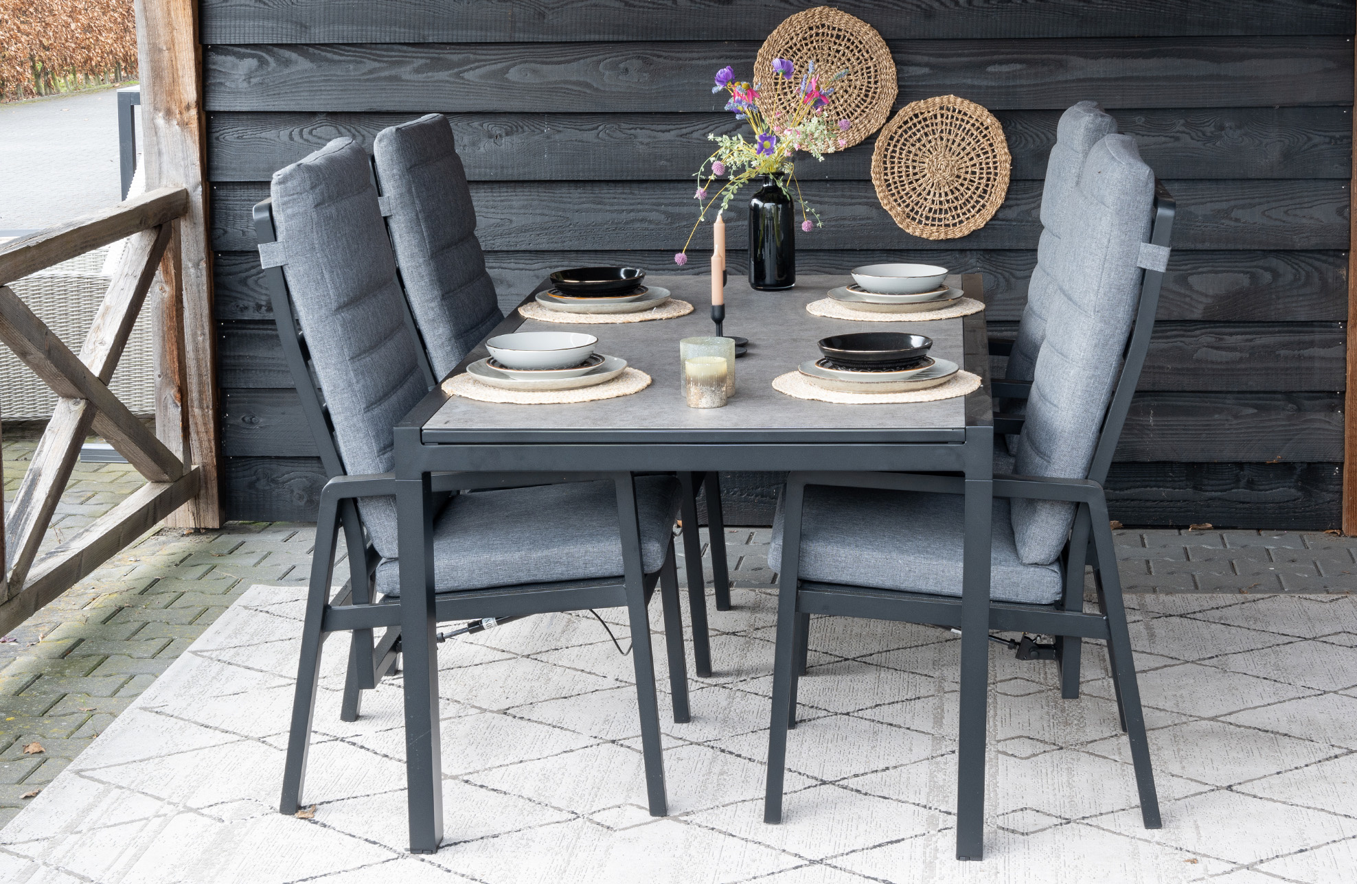 5-Delige tuinset | 4 Berlijn tuinstoelen (Black) | Tuintafel Cyprus 180x100cm (Grey)