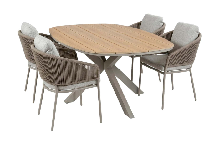 5-delige tuinset | 4 Brindsi tuinstoelen (Latte & Camel) | Tuintafel Cadiz 180x115cm (Camel)