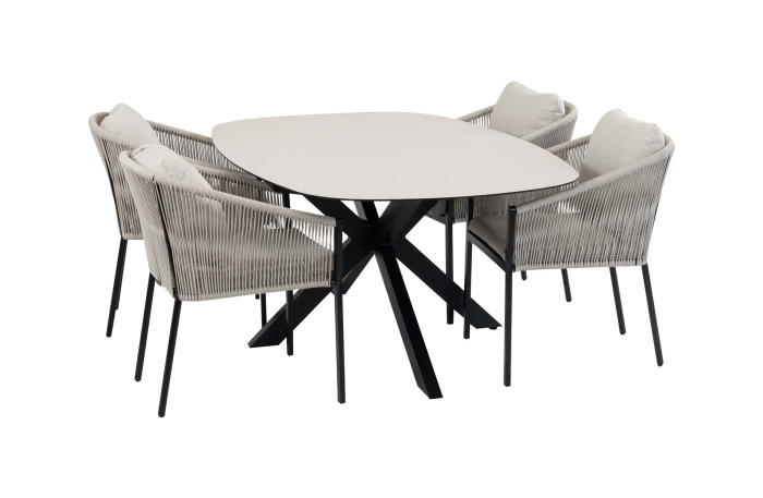 5-delige tuinset | 4 Elvira tuinstoelen | Tuintafel Barletta 180x115cm | Black Sandstone