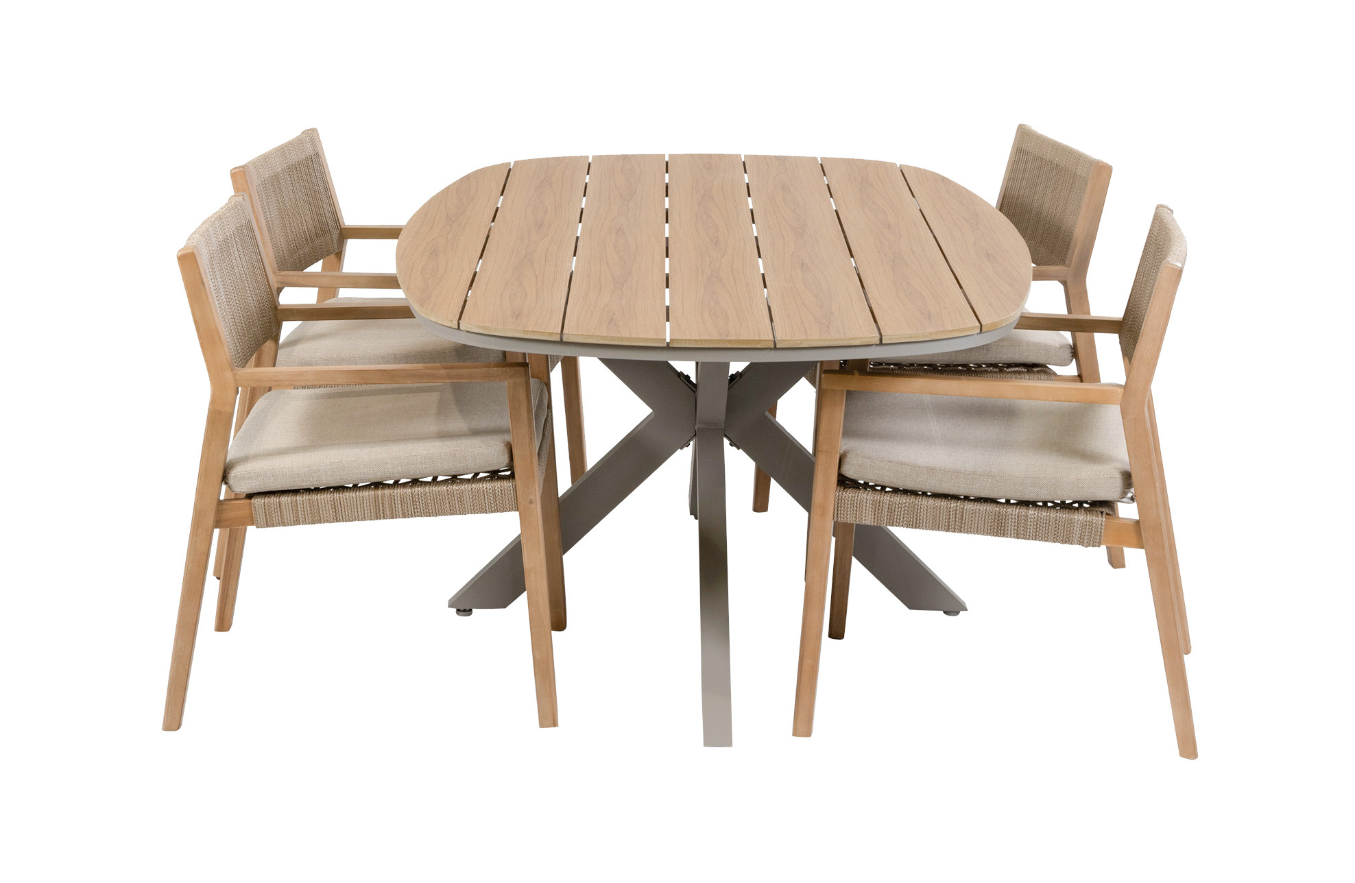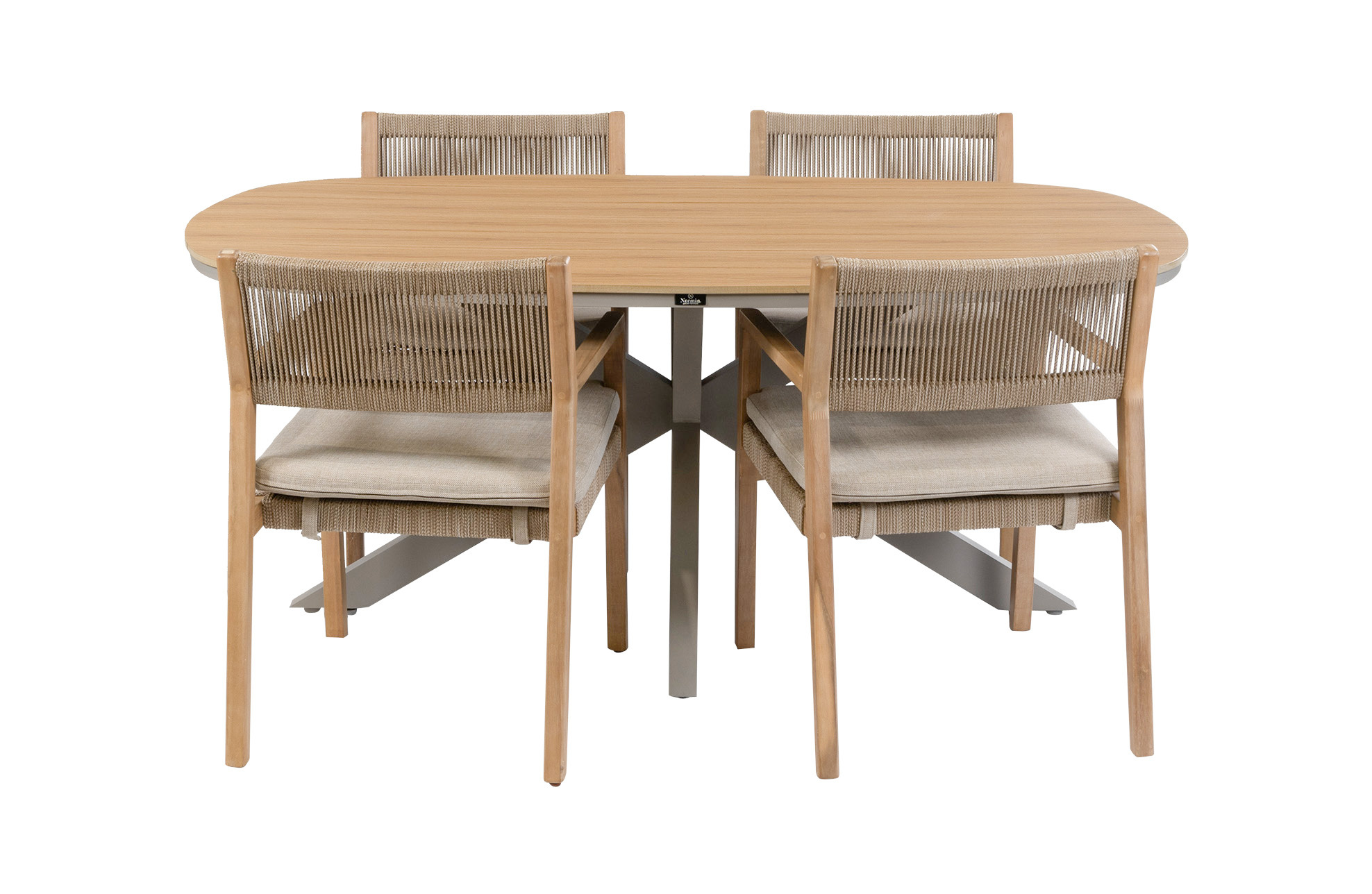 5-delige tuinset | 4 Felline tuinstoelen (Acaciahout) | Tuintafel Cadiz 180x115cm (Camel)