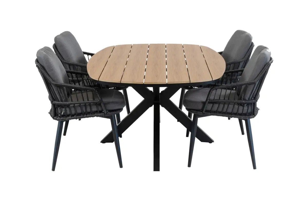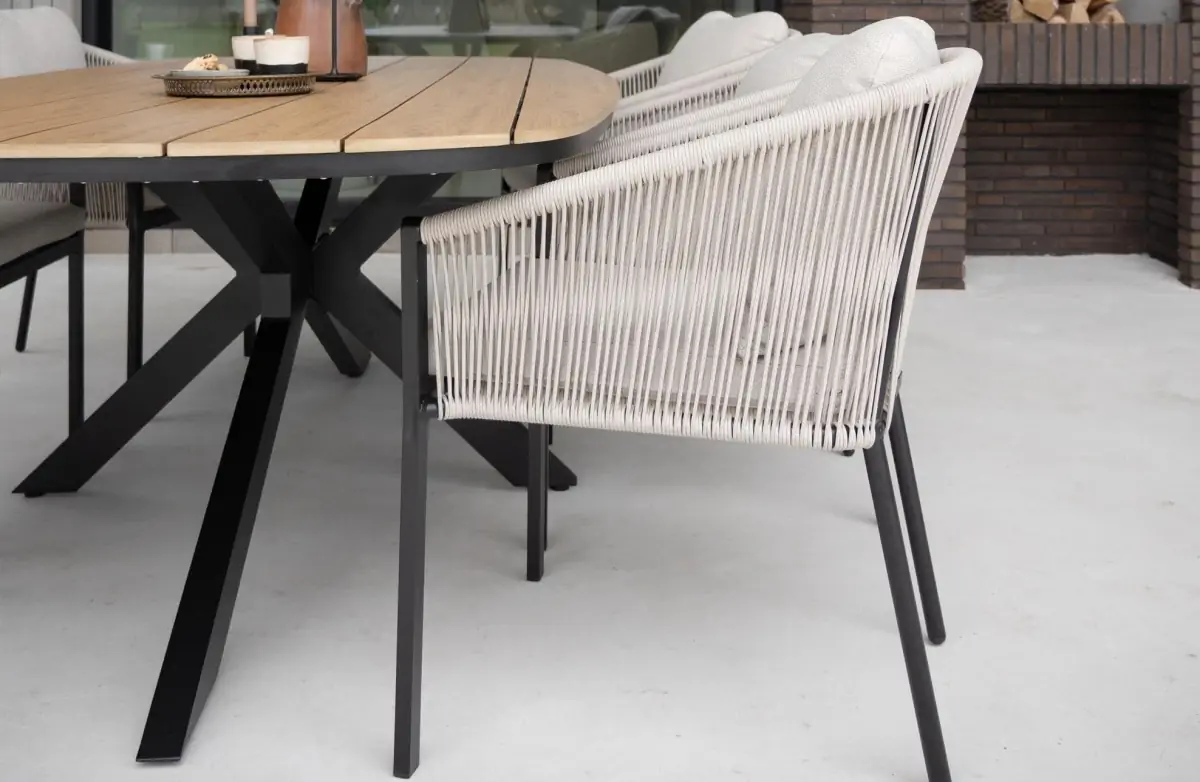 5-delige tuinset | 4 Isabel tuinstoelen (Sand/Wood) | Tuintafel Cadiz 180x115cm (Camel)
