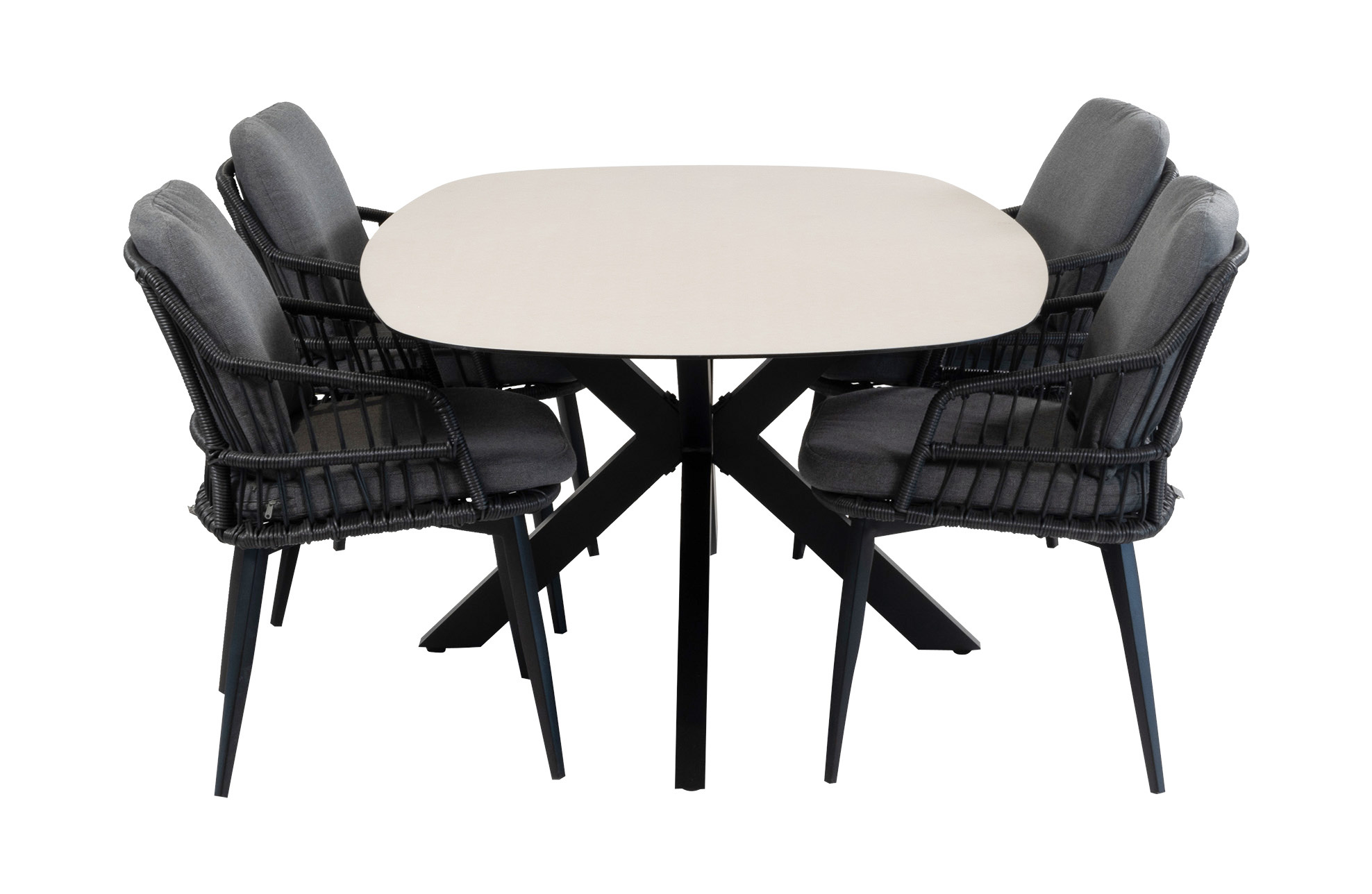 5-delige tuinset | 4 Isabel tuinstoelen (Black) | Tuintafel Malaga 180x115cm (Black)