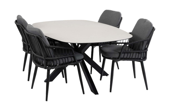 5-delige tuinset | 4 Isabel tuinstoelen | Tuintafel Barletta 180x115cm | Black & Black Sandstone