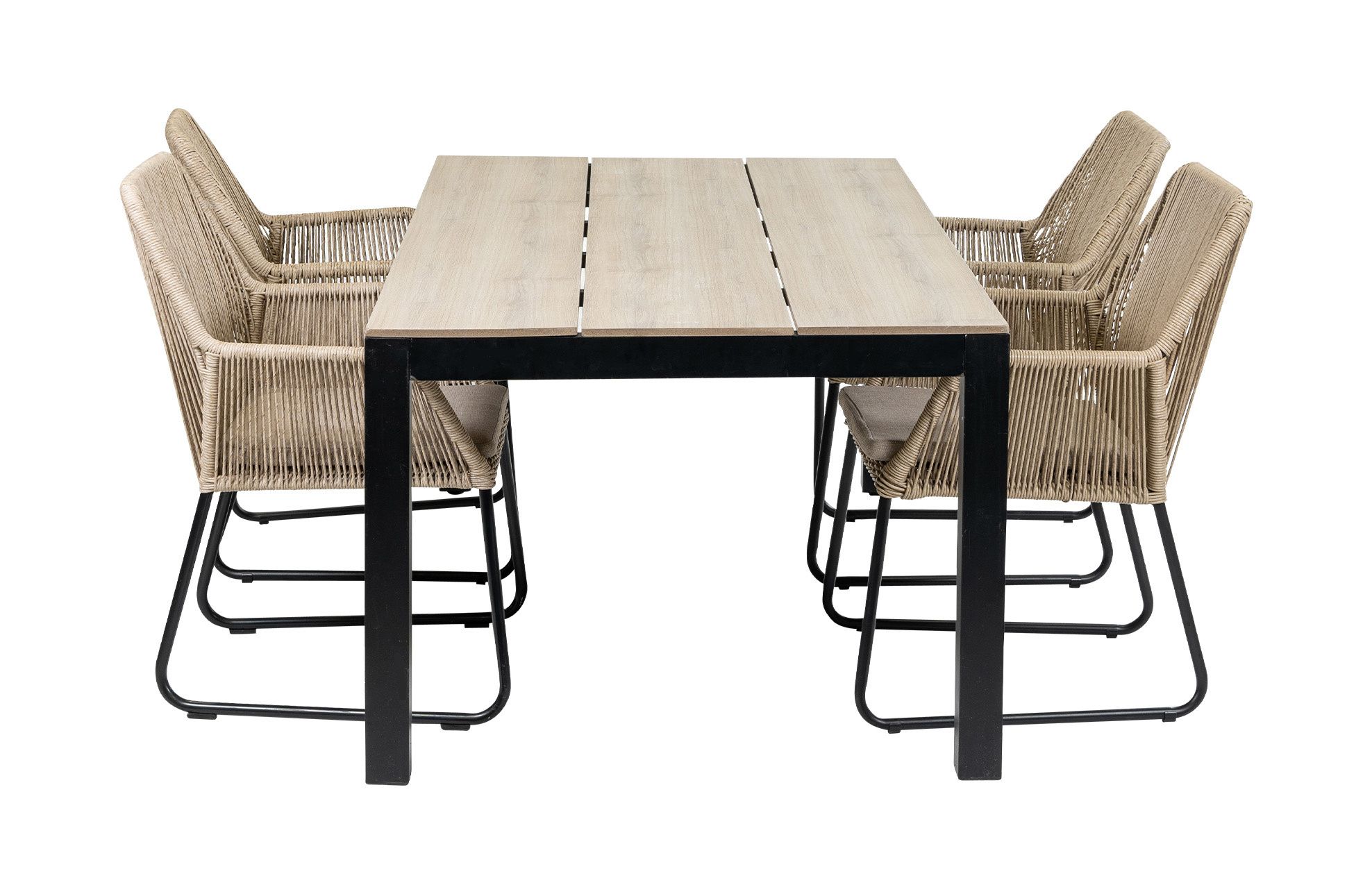5-delige tuinset | 4 Mona tuinstoelen (Sand) | 180cm Cyprus tuintafel (Wood)