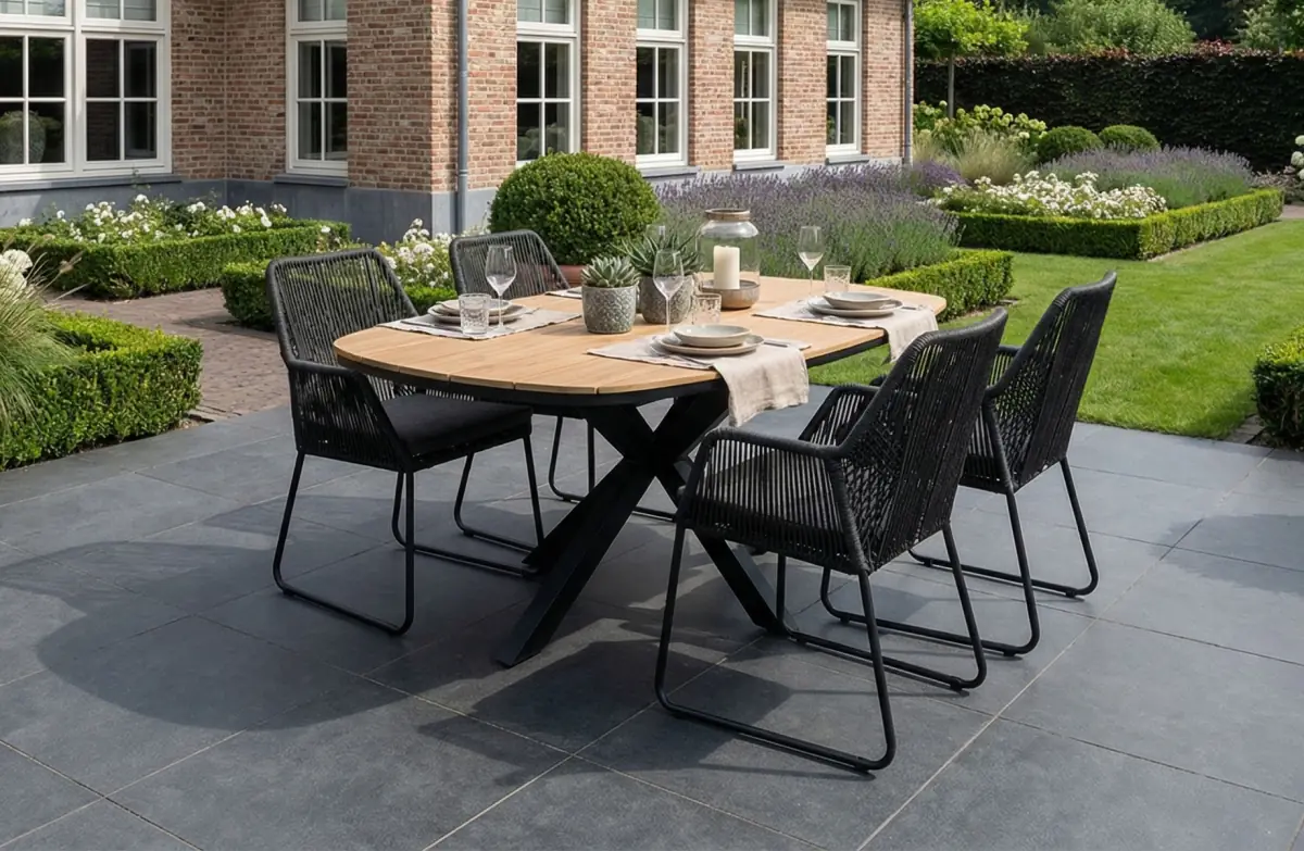 5-delige tuinset | 4 Mona tuinstoelen (Sand) | Tuintafel Cadiz 180x115cm (Black)