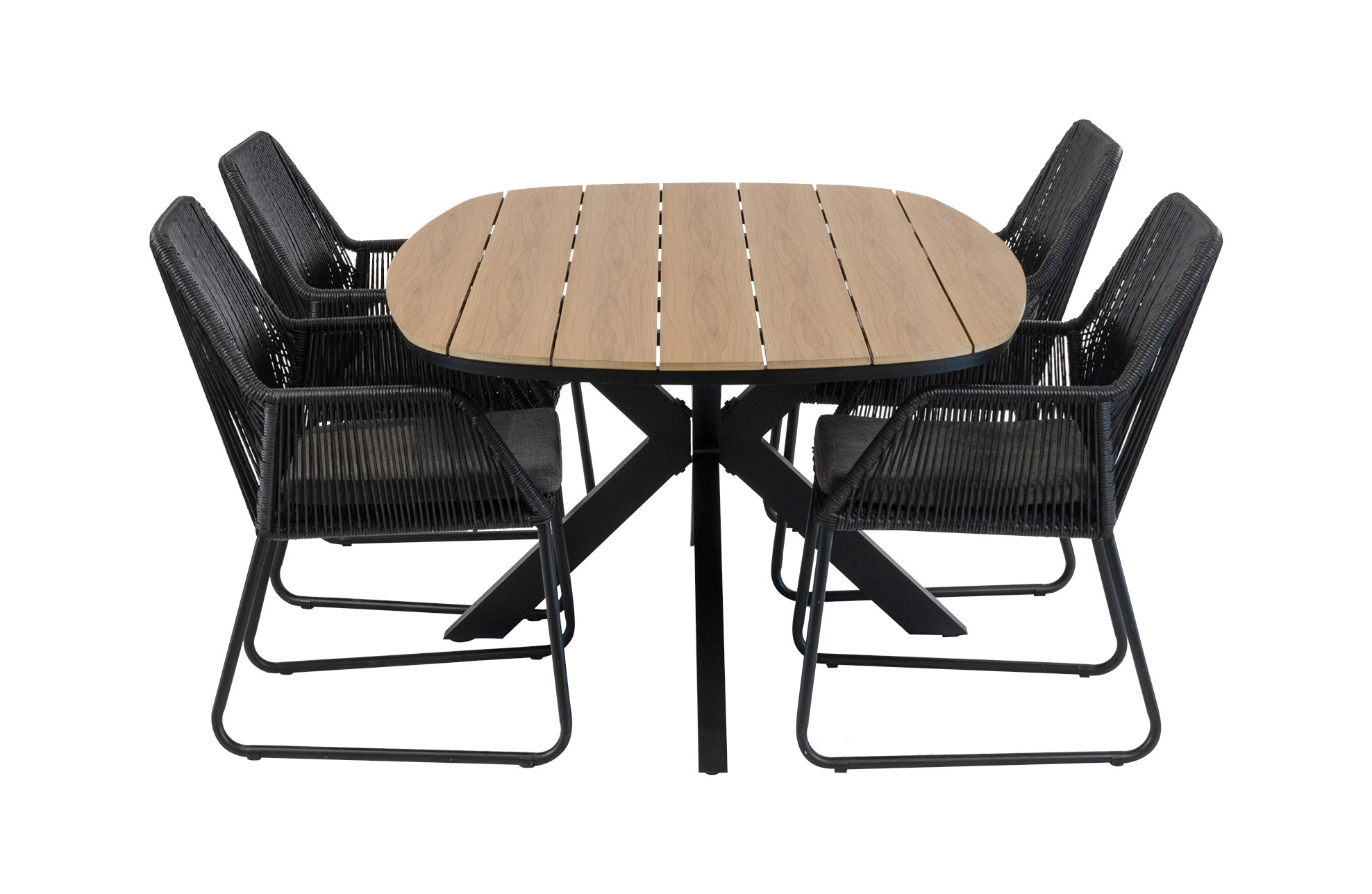 5-delige tuinset | 4 Mona tuinstoelen (Black) | Tuintafel Cadiz 180x115cm (Black)