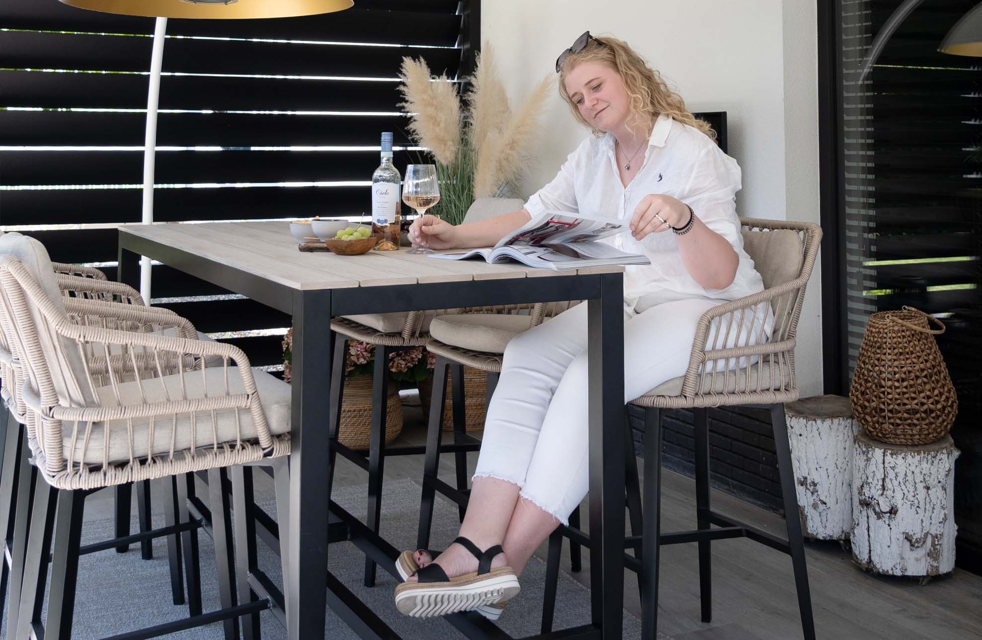 Deze outdoor barset is te bekijken in onze showroom in Enschede