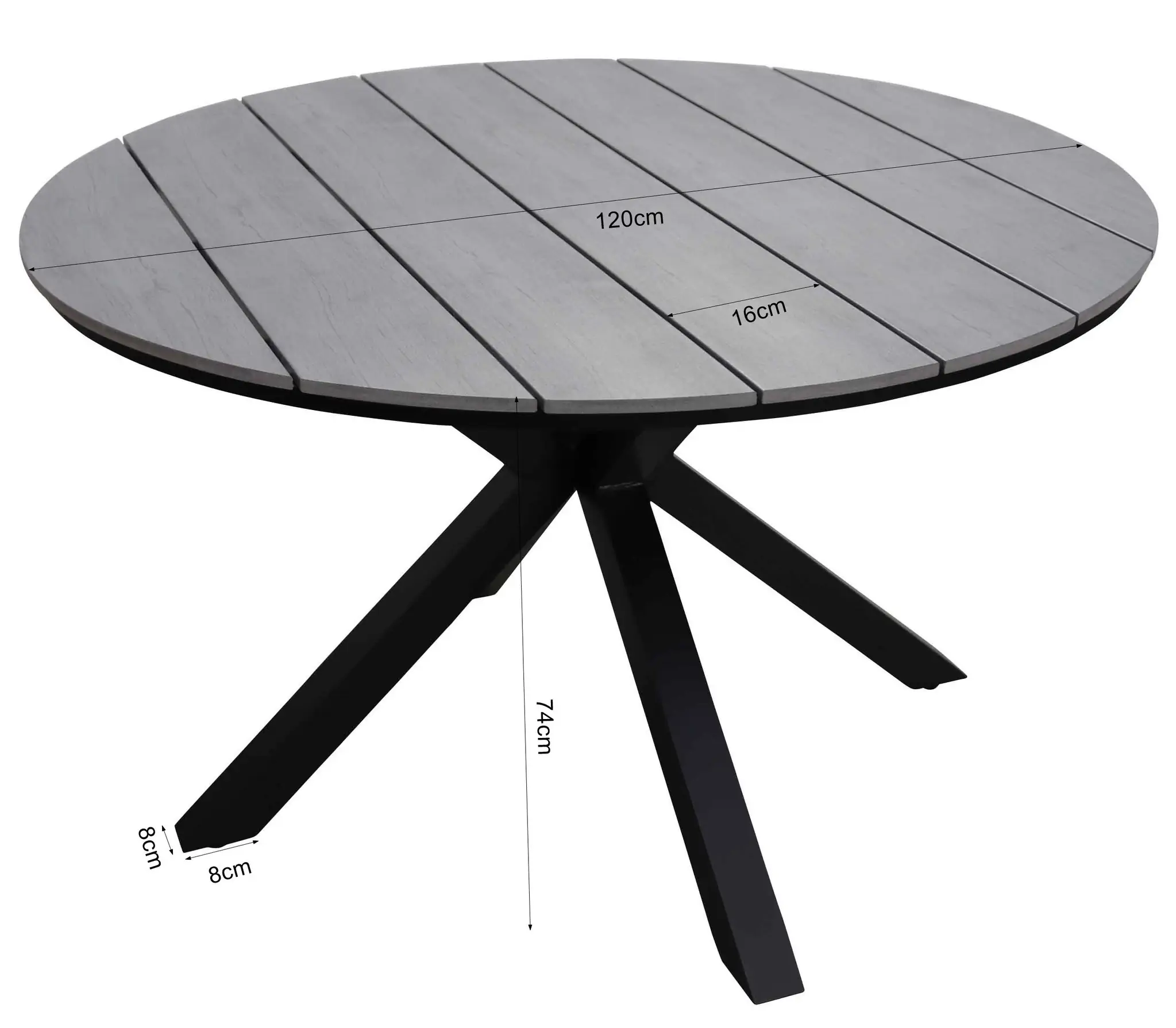 De ronde tuintafel bij deze set heeft een blad gemaakt van polywood met een aluminium kruispoot onderstel en is licht in gewicht. Hierdoor is de tafel makkelijk te verplaatsen en onderhoudsvrij. De tafel wordt in delen geleverd en is eenvoudig met enkele schroeven en een duidelijke beschrijving te monteren. Wij adviseren de tuintafel, wanneer deze niet gebruikt wordt, af te dekken of op te bergen om de levensduur van het product te verlengen. Wij bieden hiervoor diverse afdekhoezen aan.