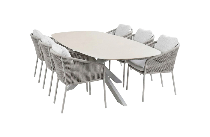 7-delige tuinset | 6 Alezio tuinstoelen (Beige) | Tuintafel Barletta 240x115cm (Camel/Sandstone)