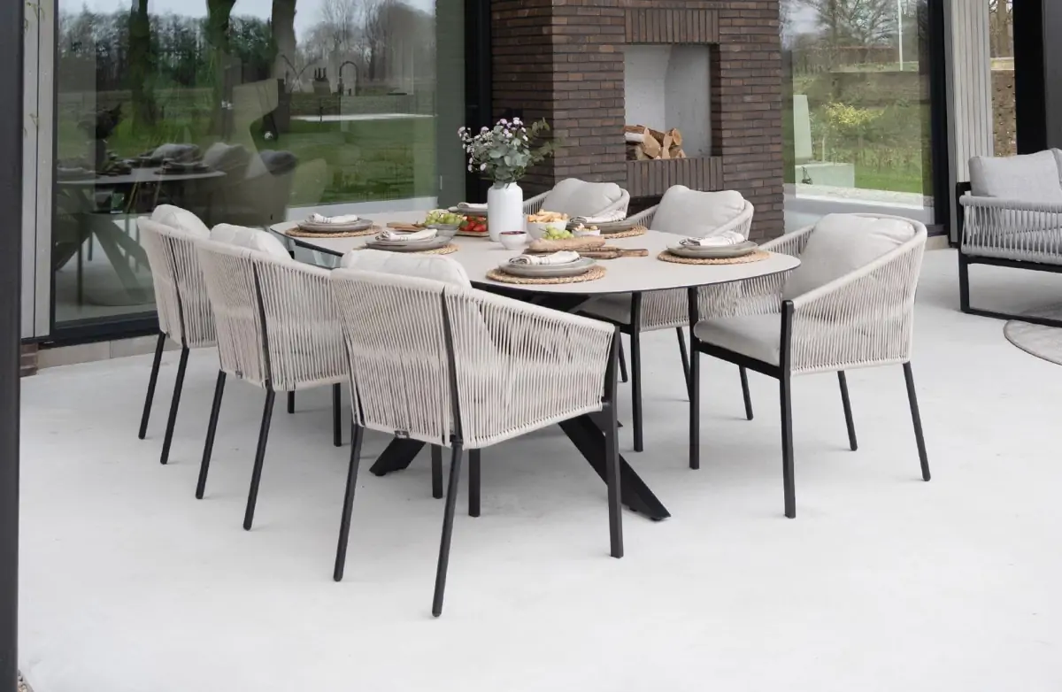 7-delige tuinset | 6 Elvira tuinstoelen (Camel) | Tuintafel Malaga 240x115cm (Camel)