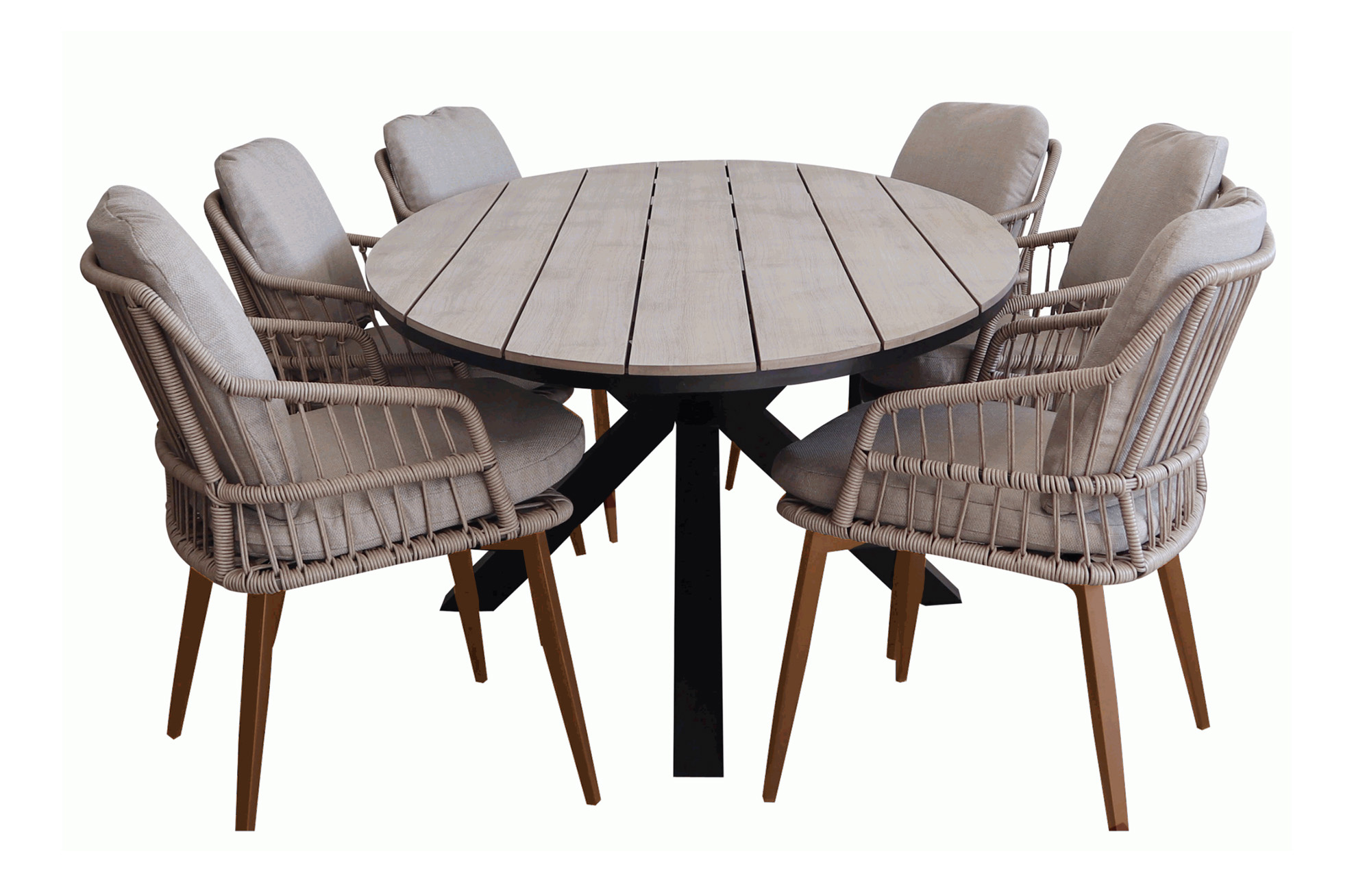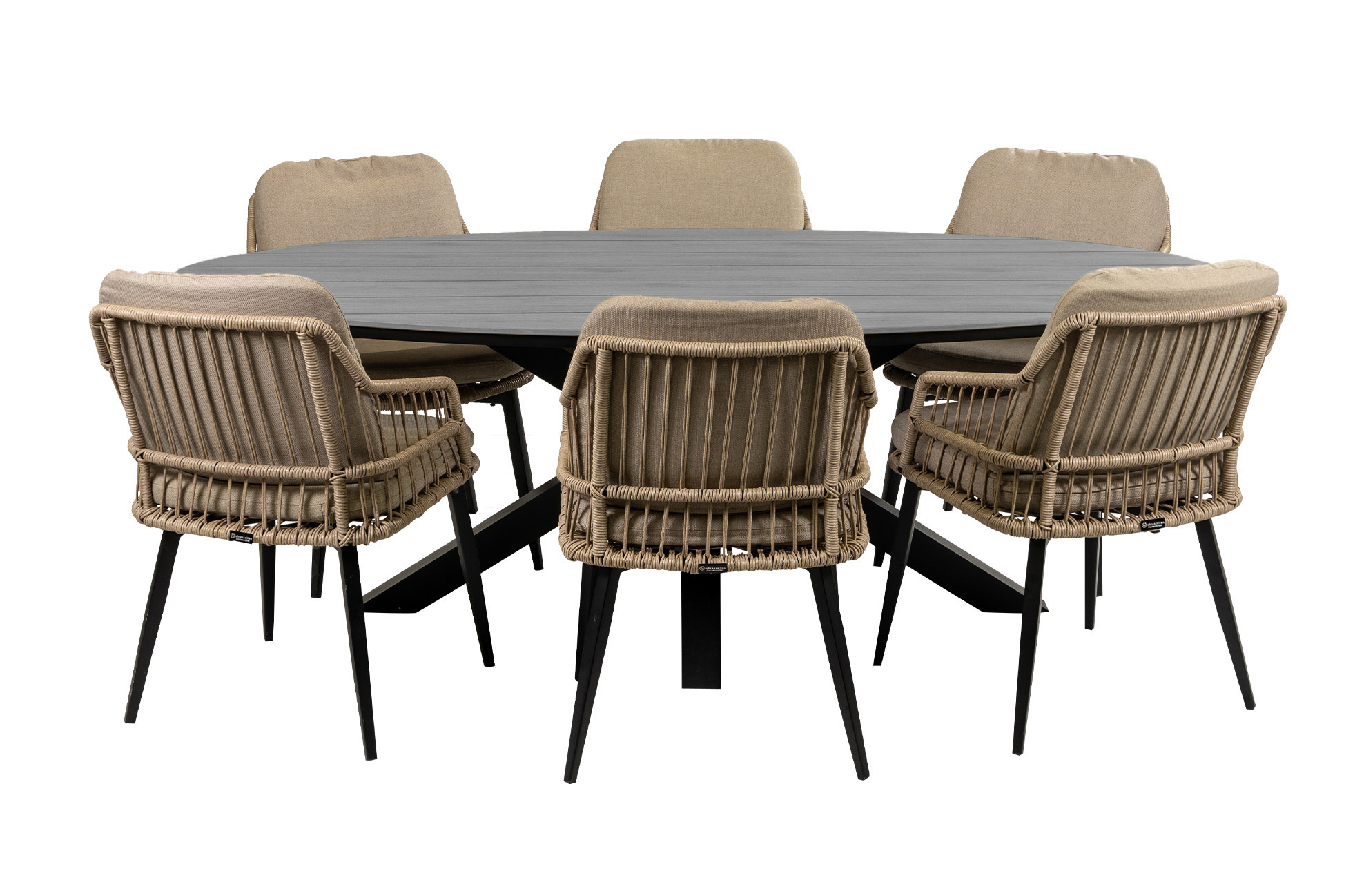 7-delige tuinset | 6 Isabel tuinstoelen (sand/wood) | 220cm ovale Cyprus tuintafel (Wood)
