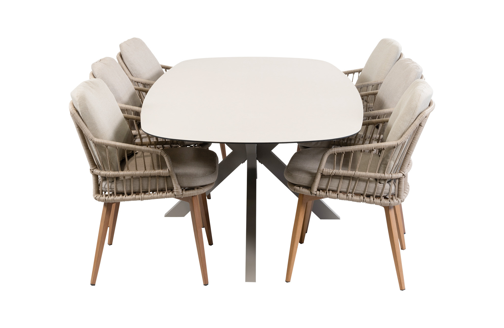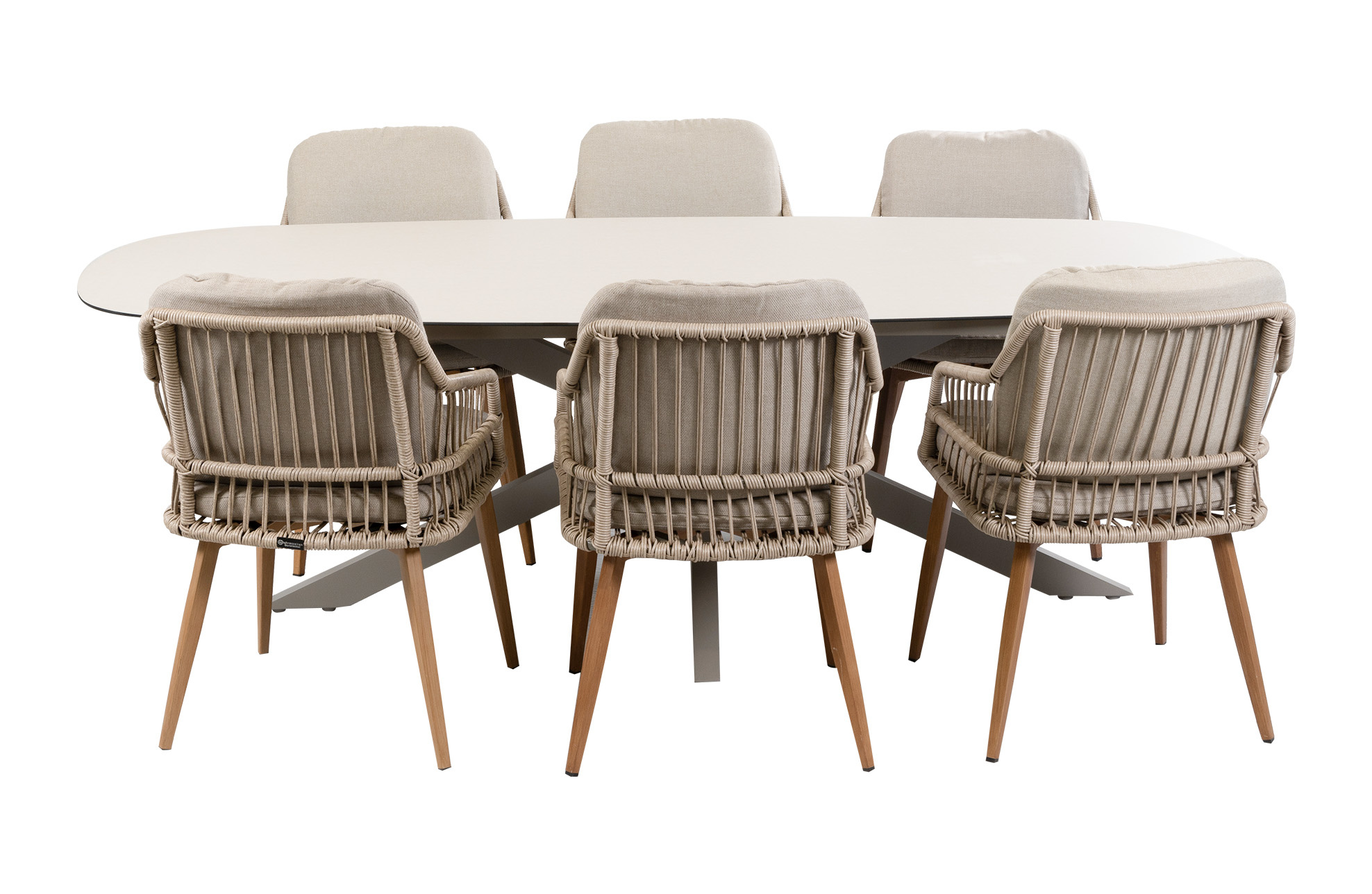 7-delige tuinset | 6 Isabel tuinstoelen (Sand/Wood) | Tuintafel Malaga 240x115cm (Camel)