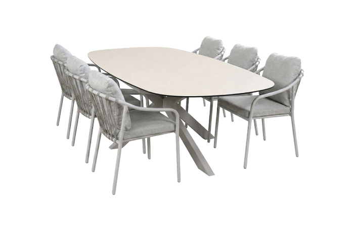 7-delige tuinset | 6 Parijs tuinstoelen | Tuintafel Malaga 240x115cm