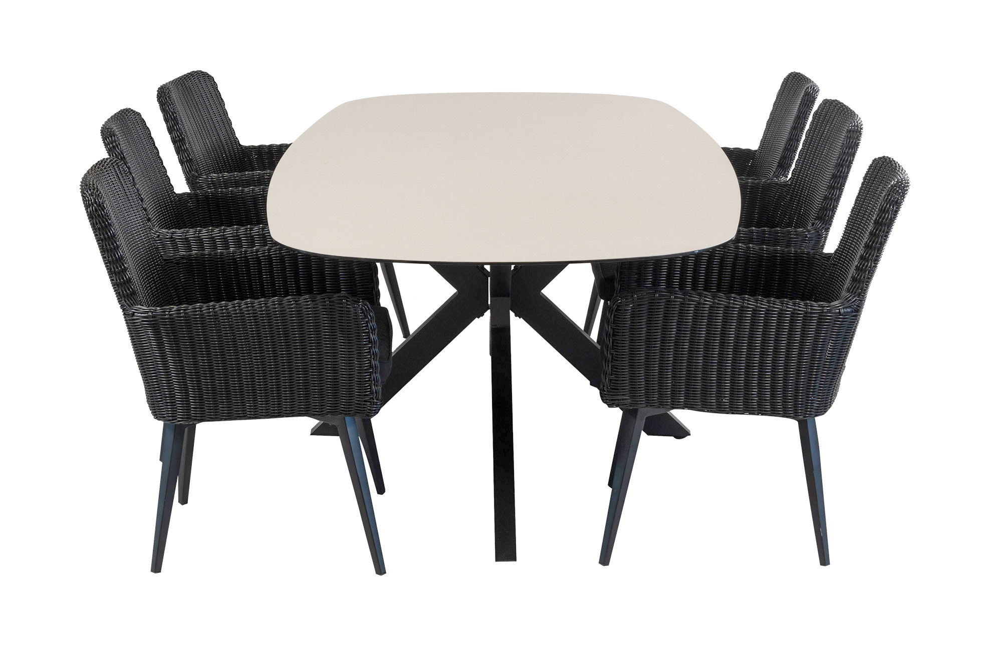7-delige tuinset | 6 Pisa tuinstoelen (Black) | Tuintafel Malaga 240x115cm (Black)