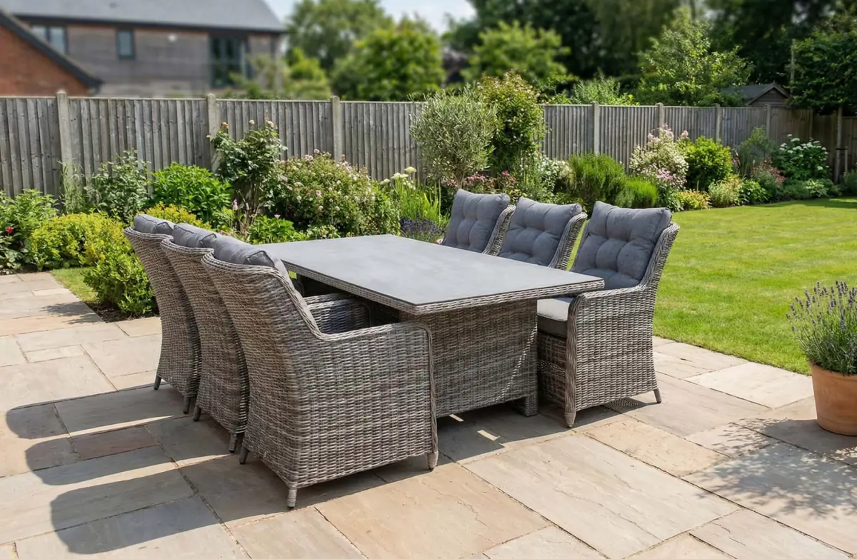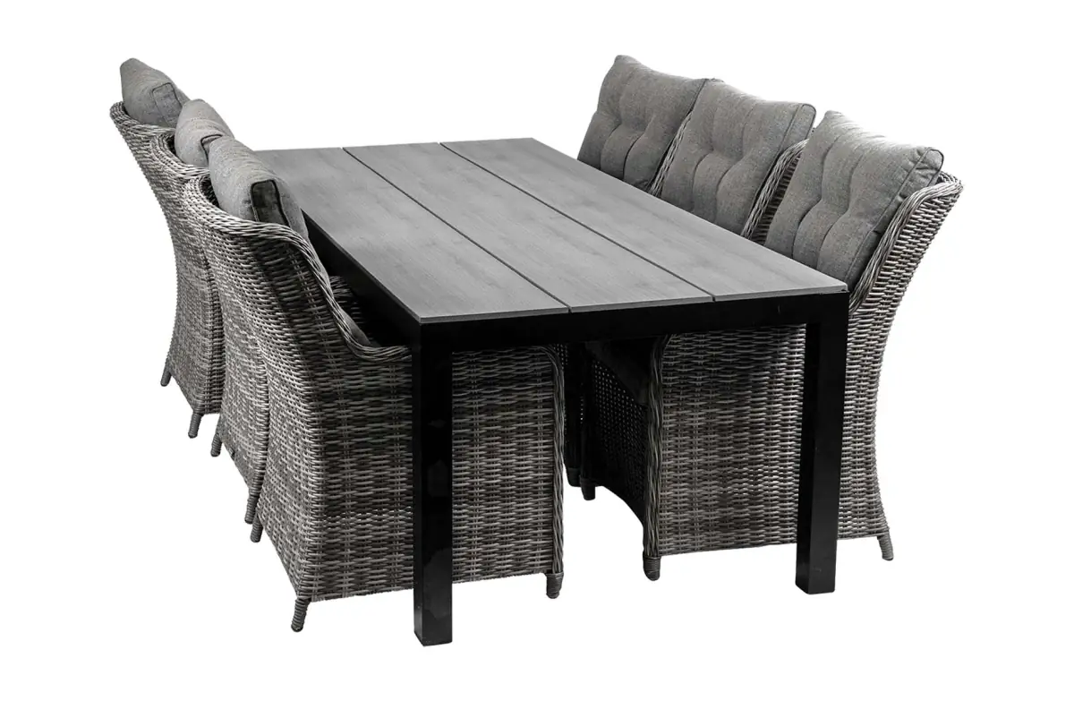7-delige tuinset | 6 Sevilla tuinstoelen (AG) | 230cm tuintafel | Wicker & Keramiek