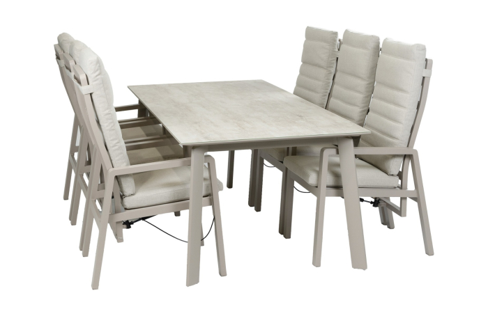 7-delige tuinset | 6 verstelbare Berlijn tuinstoelen (Champagne) | Tuintafel Malta 220x100cm