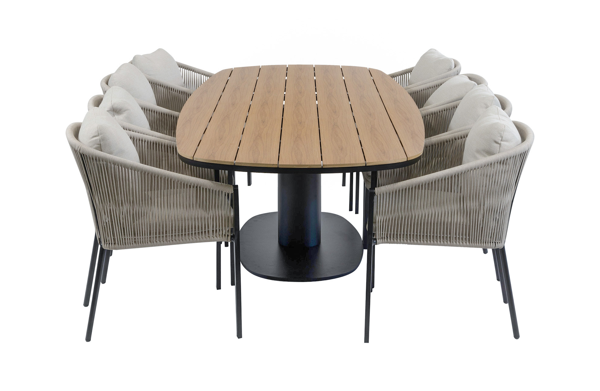9-delige tuinset | 8 Elvira tuinstoelen (Black) | 260cm Tower tuintafel (Black)