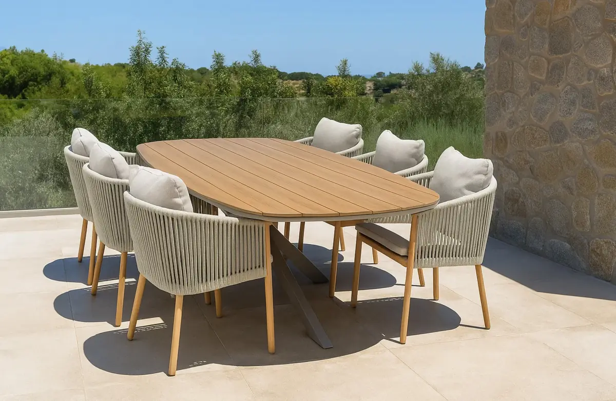 9-delige tuinset | 8 Es Vedra tuinstoelen (Teakhout) | Tuintafel Cadiz 280x115cm (Camel)