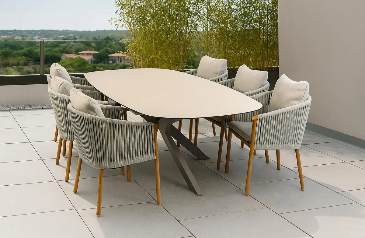 9-delige tuinset | 8 Es Vedra tuinstoelen (Teakhout) | Tuintafel Malaga 280x115cm (Camel)