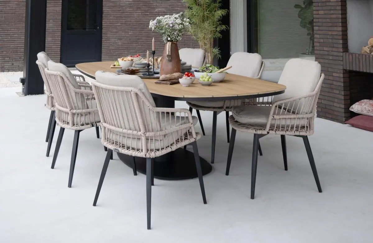 9-delige tuinset | 8 Isabel tuinstoelen (Sand/Wood) | Tuintafel Tower 260cm (Camel)
