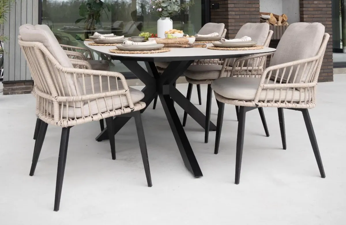 9-delige tuinset | 8 Pisa tuinstoelen (Black) | Tuintafel Malaga 280x115cm (black)