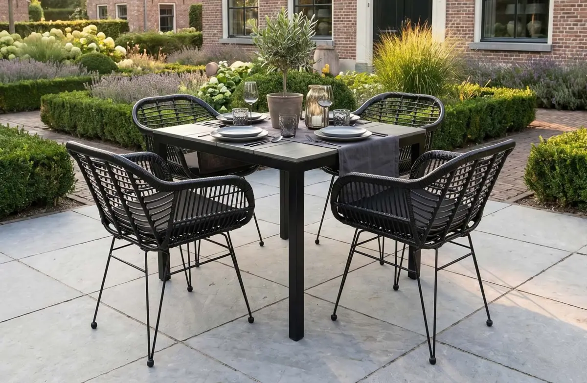 90x90 Cyprus | Grey + 4x Stapelbare tuinstoel Delia | Black | Textileen | Brafab
