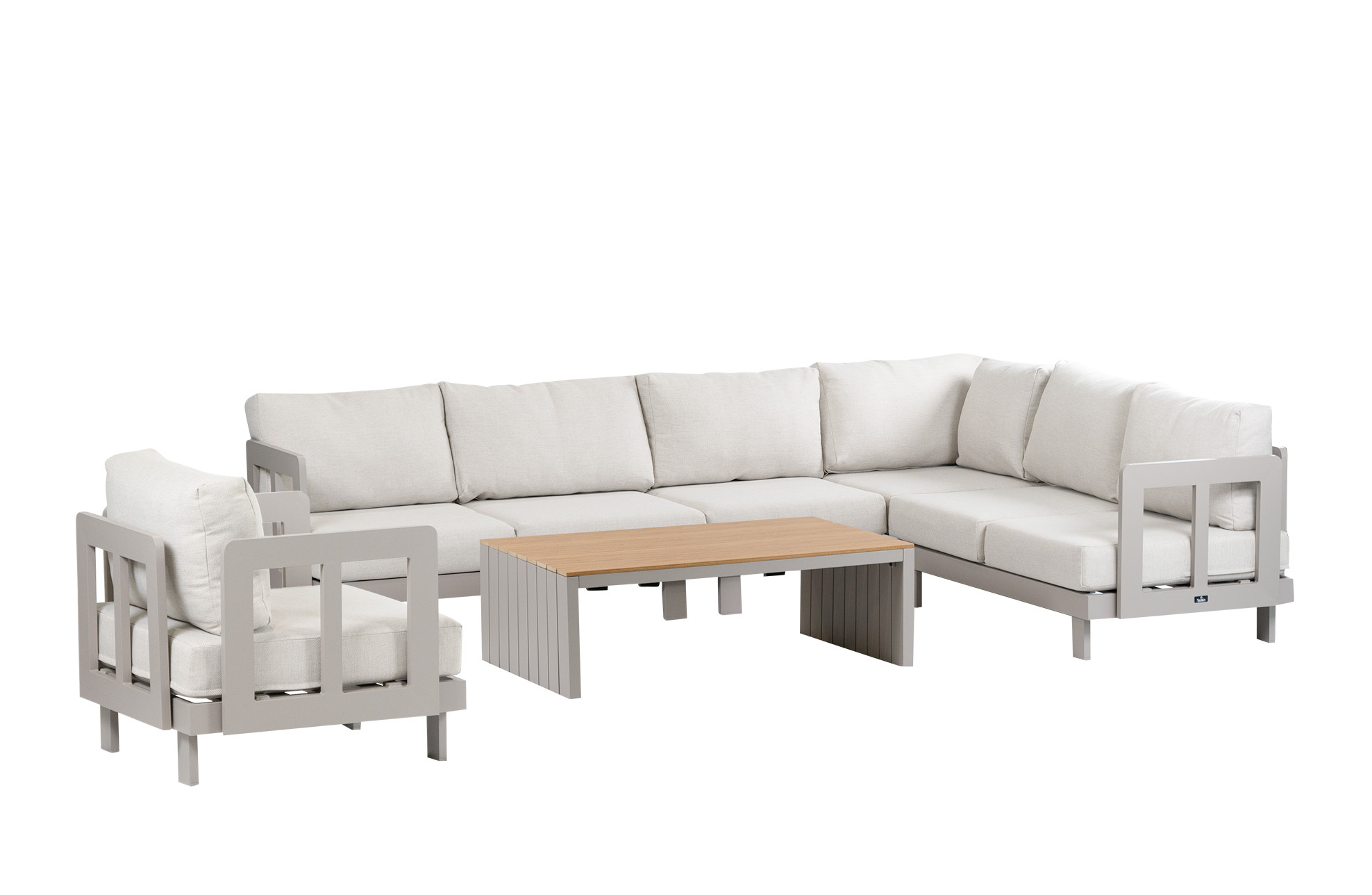 Het Tulum bankdeel is uitgerust met extra dikke, comfortabele kussens in een elegante zandkleur. Deze neutrale tint geeft het bankdeel een luxe en uitnodigende uitstraling, die naadloos aansluit bij de natuurlijke omgeving van je tuin. De kussens zijn eenvoudig schoon te maken, zodat ze bestand zijn tegen dagelijks buitengebruik en er langdurig mooi uitzien. Wel raden we altijd aan bij langdurig geen gebruik ze droog op te bergen.
