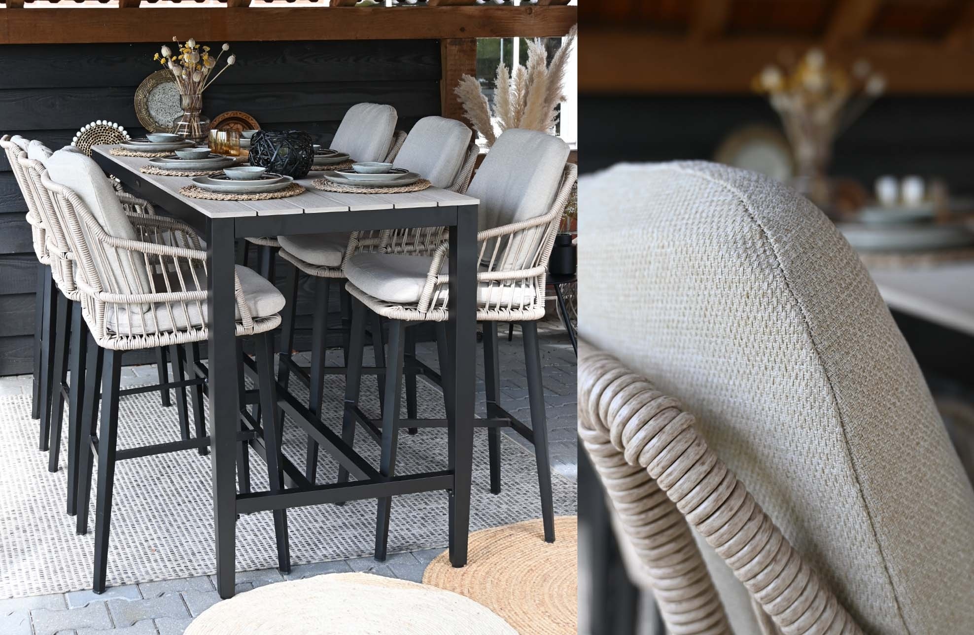 Ben je op naar een moderne en onderhoudsvrije bartafel voor buiten? Dan is de polywood bartafel Cyprus helemaal datgene wat je zoekt! Cyprus bartafel bestaat uit een polywood (kunststof) tafelblad met een gepoedercoated matt zwart aluminium frame. Bartafel cyprus is geschikt voor 4 a 6 personen. Combineer de Cyprus aluminium bartafel met de Isabel barstoelen.