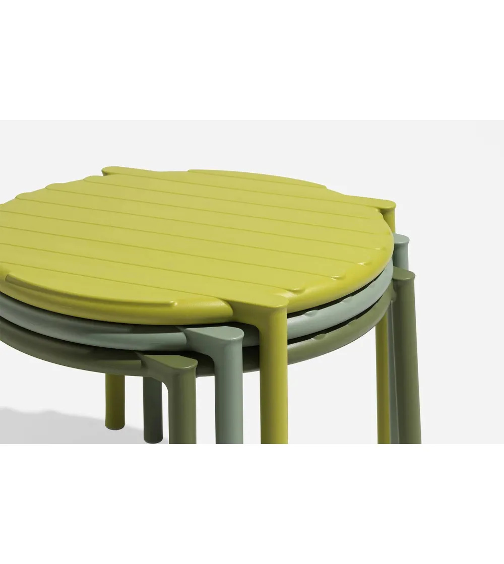 De Nardi Doga ronde bijzettafel is een modern maar vooral een handig tafeltje voor buiten. Doga stapelbare bijzettafel, vervaardigd uit hoogwaardig glasvezel, belichaamt duurzaamheid en gemak. Dankzij deze constructie is de stoel onderhoudsvrij, eenvoudig schoon te maken, lichtgewicht en recyclebaar. Een UV-bestendige toplaag behoudt zijn kleurintegriteit, terwijl het moderne minimalistische design, ontworpen door Raffaello Galiotto, een eigentijdse twist biedt met horizontale latten. Bovendien is deze bijzettafel stapelbaar, waardoor hij gemakkelijk op te bergen is tijdens de wintermaanden.