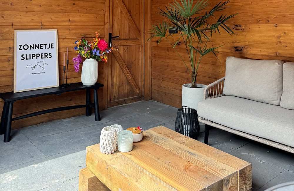 De meeste ideeën deden Nick en Lotte op via Pinterest en interieuraccounts op Instagram. Toch kozen ze heel bewust hun eigen pad. “Je ziet online veel perfecte plaatjes, maar wij wilden een tuin die écht bij ons past. Een plek die ons verhaal vertelt.”