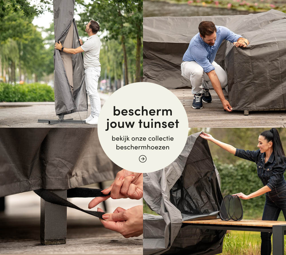 Ja, ook bij onderhoudsvrije materialen raden wij een hoes aan. Een beschermhoes verlengt de levensduur van jouw tuinmeubelen en beschermt tegen vuil, vocht en kleurverschil.