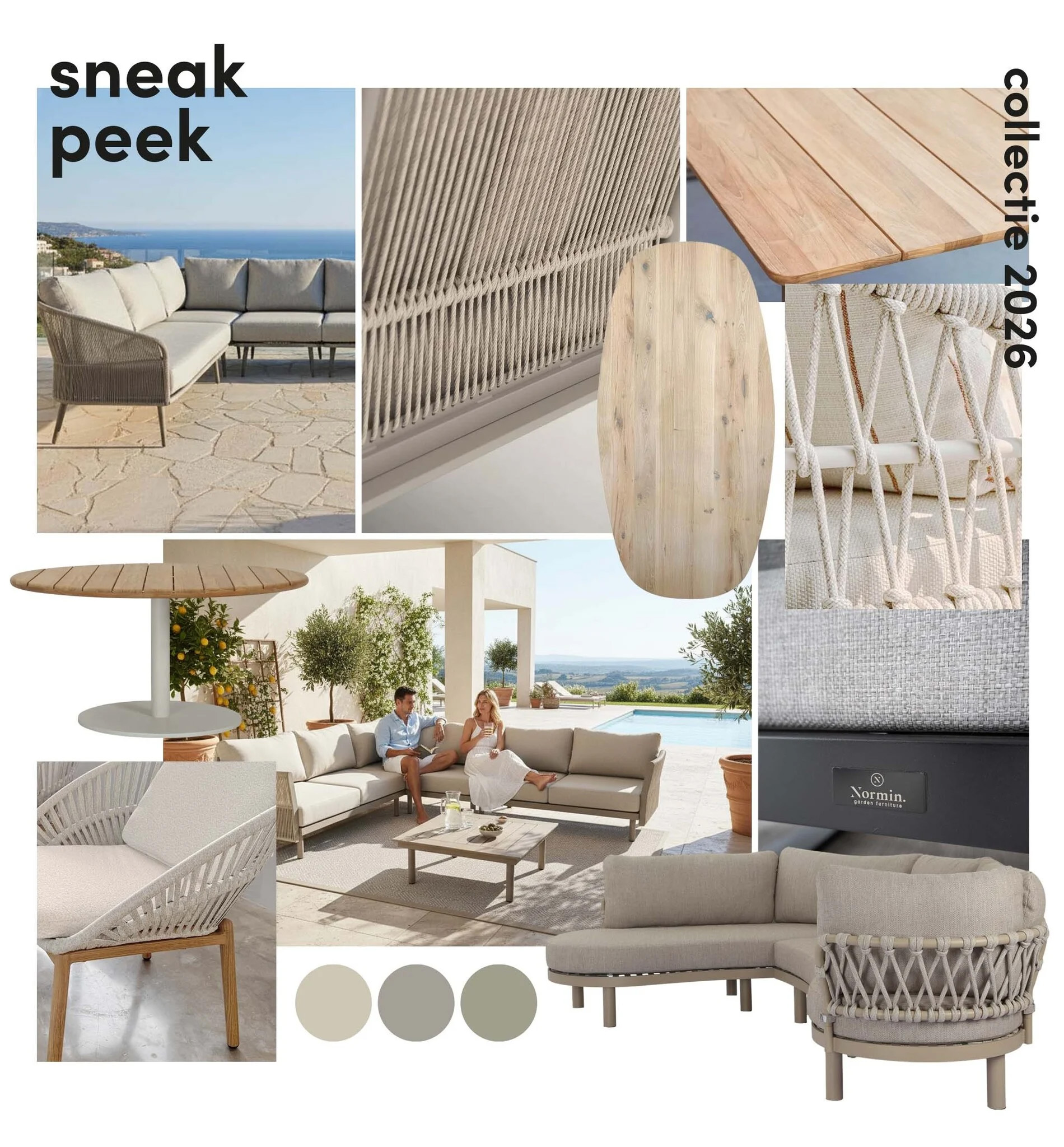 Een meubel dat je vaak gebruikt, verdient materialen die zowel functioneel als esthetisch op lange termijn overtuigen. In onze nieuwste collectie voor 2026 combineren we FSC-teak, gewaardeerd om zijn warme uitstraling en natuurlijke oliën, met aluminium voor laag gewicht en weerbestendigheid, en keramiek voor slijtvaste tafelbladen met een verfijnde ‘indoor’ look. Zo ontstaat er een duurzame materiaal-mix die bestand is tegen intensief gebruik, eenvoudig te onderhouden is en, belangrijk, mooi veroudert. Teak kan bijvoorbeeld natuurlijk vergrijzen dat dan uitstekend matcht met zand- en cameltinten. Wie de warme houtkleur wil behouden, kiest voor een beschermende UV-olie en een jaarlijkse reiniging.