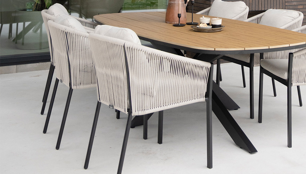 Aluminium en kunststof zijn onderhoudsarm. Aluminium is roestvrij en licht van gewicht. Kunststof is kleurvast en goed bestand tegen vocht. Teakhout vraagt iets meer onderhoud, maar gaat lang mee als je het goed verzorgt.
