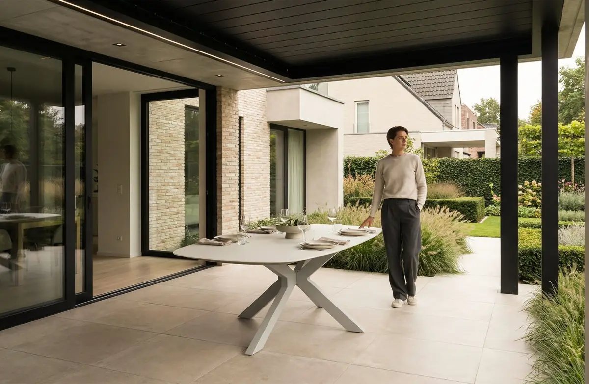 | Eigenschappen | Weersbestendig, Onderhoudsvriendelijk, Gepoedercoat frame, Roestvrij, Waterafstotende kussens |