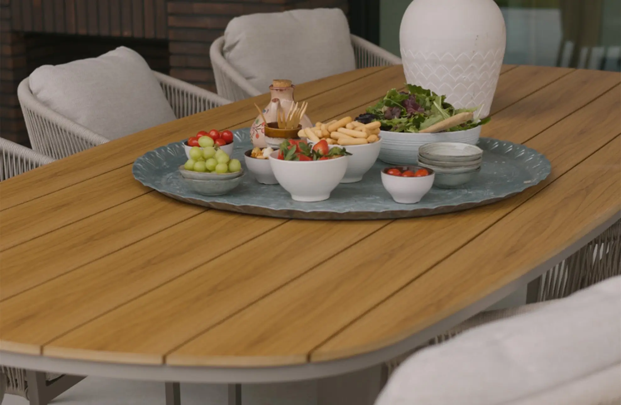 Door het gebruik van duurzame materialen waaronder het aluminium gepoedercoat frame en vlechtwerk van synthetisch touw is deze stoel onderhoudsvriendelijk.