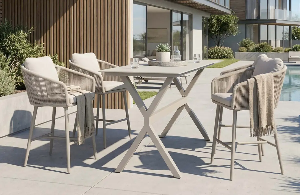 High Dining stoel Alezio | Latte/Camel | Aluminium & Rope