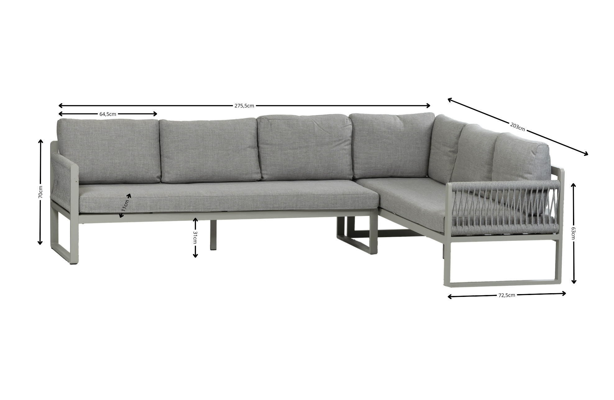 De comfortabele zit- en rugkussens in een zachte zandkleur bieden een uitnodigende plek om te ontspannen. Dankzij de hoogwaardige materialen zijn de kussens niet alleen heerlijk zacht, maar ook duurzaam en weerbestendig, zodat je zorgeloos kunt genieten van je loungeset. De royale afmetingen maken het gemakkelijk om met vrienden en familie te loungen, terwijl het lichte design ervoor zorgt dat de set een frisse en luchtige uitstraling heeft.