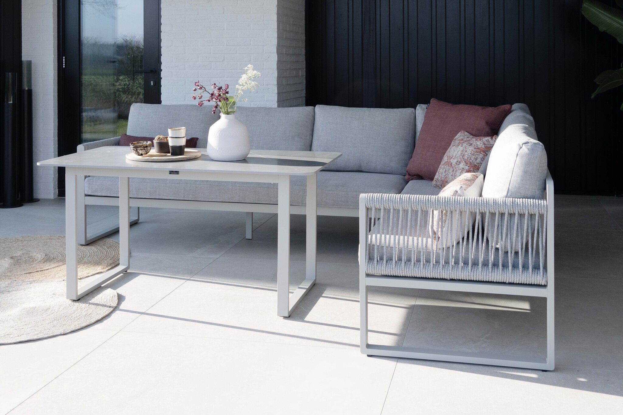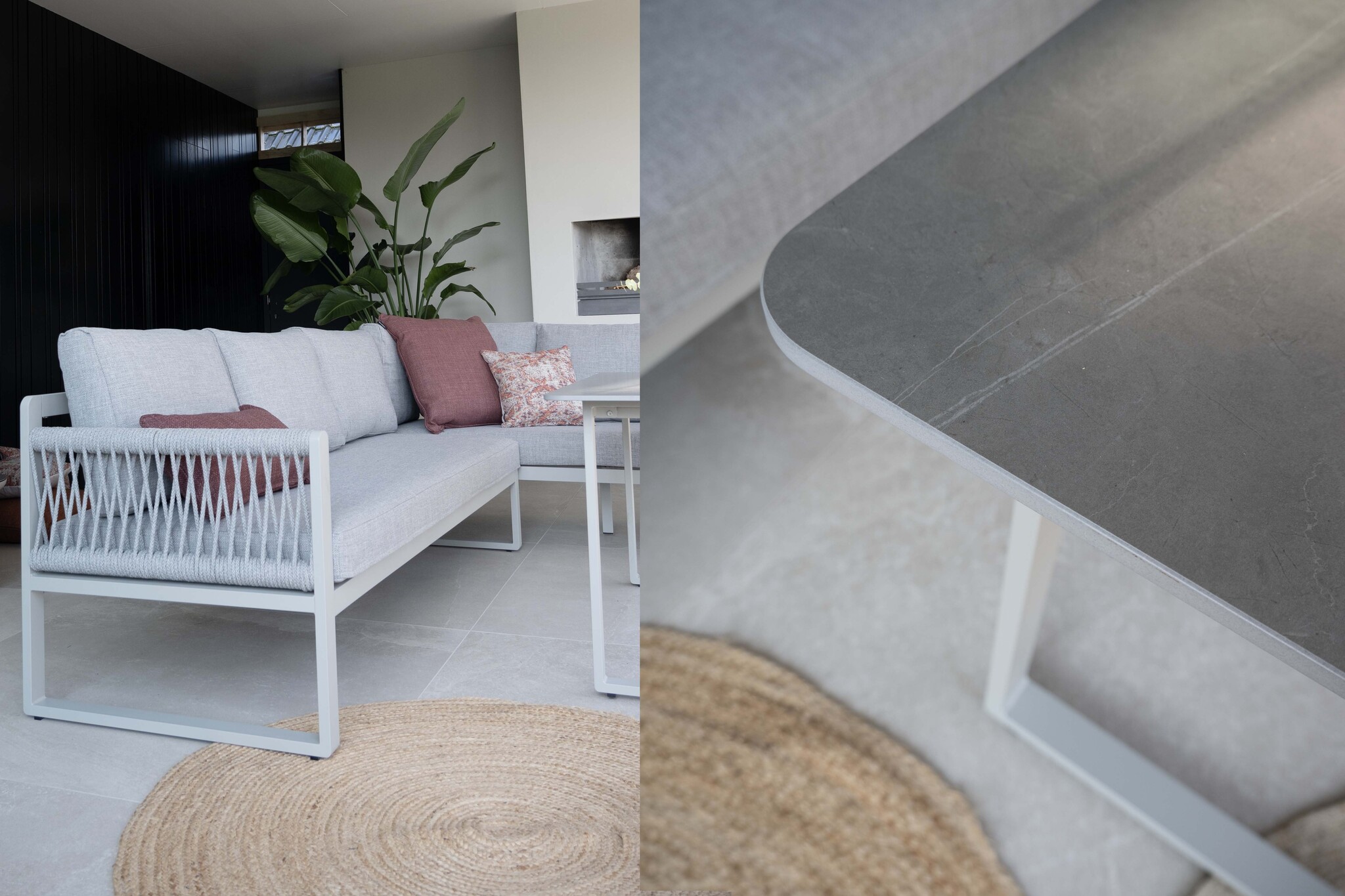 De Reims loungeset combineert tijdloos design met ultiem comfort, waardoor je tuin of terras een stijlvolle uitstraling krijgt. Het frame in de elegante kleur Sand vormt de perfecte basis voor een rustige en harmonieuze buitenruimte. De subtiele rope details in de tint Earth op de arm- en rugleuningen geven de set een speelse en moderne twist, terwijl ze tegelijkertijd zorgen voor extra stevigheid en karakter.