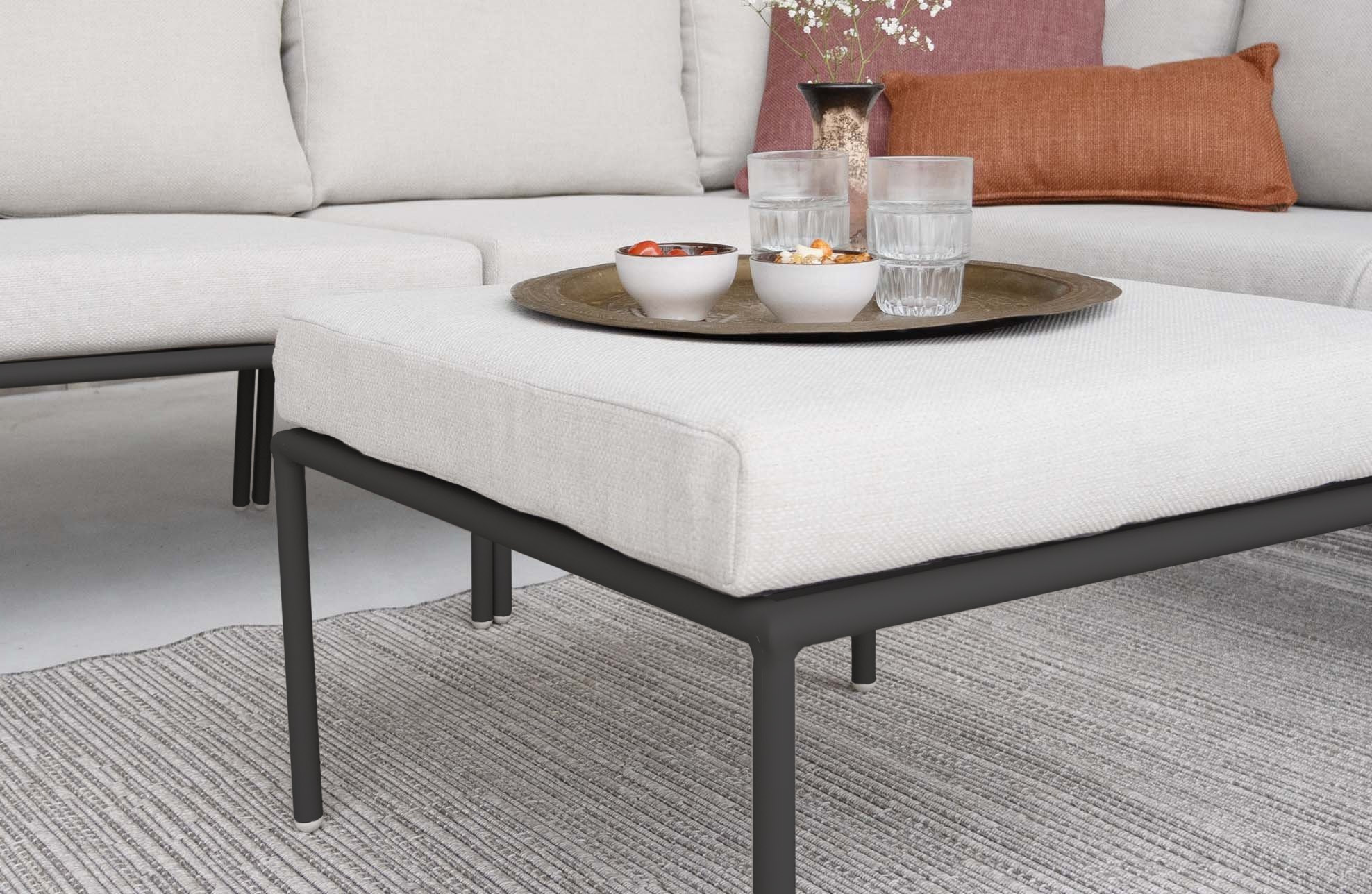 Wat deze loungeset extra bijzonder maakt, is de veelzijdigheid. Je kunt de set uitbreiden met een los middenelement en een bijpassende bijzettafel/ hocker met kussen. Deze tafel kan zelfs als extra zitplek dienen, dankzij het comfortabele kussen dat erbij hoort. Dit maakt de loungeset zowel stijlvol als praktisch. De hoek loungeset Elvira bestaat uit twee losse banken die eenvoudig verbonden kunnen worden met een apart verkrijgbaar middenelement, evenals de bijpassende salontafel. Voor extra stabiliteit kunnen de losse onderdelen met tie-wraps aan elkaar worden vastgemaakt, zodat ze stevig blijven staan, zelfs bij intensief gebruik.