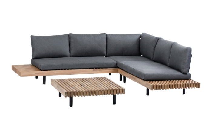 Hoek Loungeset Lissabon 3-delig | Acacia Teaklook & Antraciet | Inclusief loungetafel