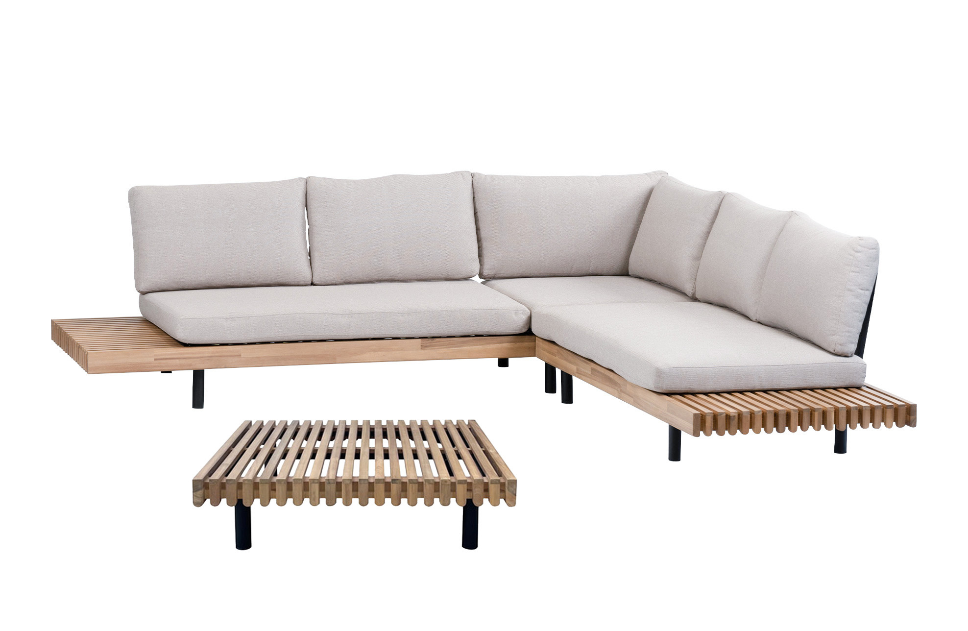 Hoek Loungeset Lissabon 3-delig | Acacia Teaklook & Sand | Inclusief loungetafel