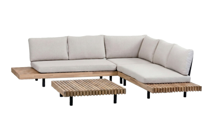 Hoek Loungeset Lissabon 3-delig | Acacia Teaklook & Sand | Inclusief loungetafel