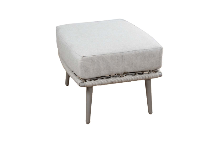 De hocker heeft een stevig gepoedercoat aluminium frame dat licht van gewicht, roestvrij en onderhoudsvrij is. Het Sake-kleurige rope geeft de hocker een moderne, luchtige uitstraling en biedt lichte flexibiliteit voor een prettig zitgevoel. Het beige kussen zorgt voor extra comfort en sluit mooi aan bij de rest van de Alezio serie. Bij langdurige regenval adviseren we om het kussen droog op te bergen.