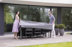 Zorg ervoor dat je alleen het specifieke product bedekt dat je wilt beschermen en laat niet alle accessoires, zoals kussens, nog op de set liggen wanneer je deze langdurig afdekt. Hoewel tuinkussens en andere accessoires gedurende een korte periode onder de hoes kunnen blijven, raden we aan om ze bij langdurige vochtige periodes binnenshuis op te bergen. Dit helpt om deze producten in optimale staat te houden!